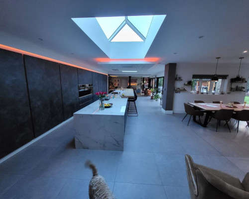 Our client came to us with the dream of open-plan living space, flooded with natural light and a minimalistic architectural style. With a sizeable garden, the potential was clearly there to extend to the rear by means of a single-storey extension.